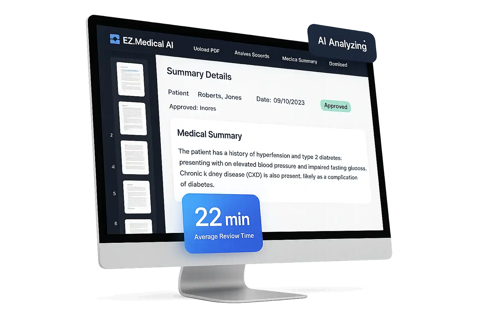 Yes. After analysis, EZ-Medical AI generates a comprehensive AI medical records summary highlighting diagnoses, treatments, and clinically relevant details, structured and ready for your expert review.